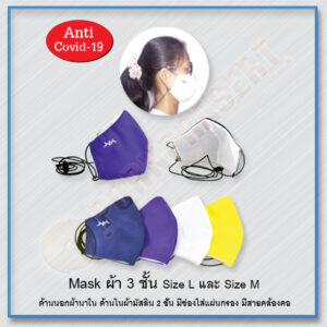 MASK สินค้าพรีเมี่ยม (หน้ากากอนามัยผ้า3ชั้น) แบบมีสายคล้อง SIZE L และ SIZE M (STOCK)